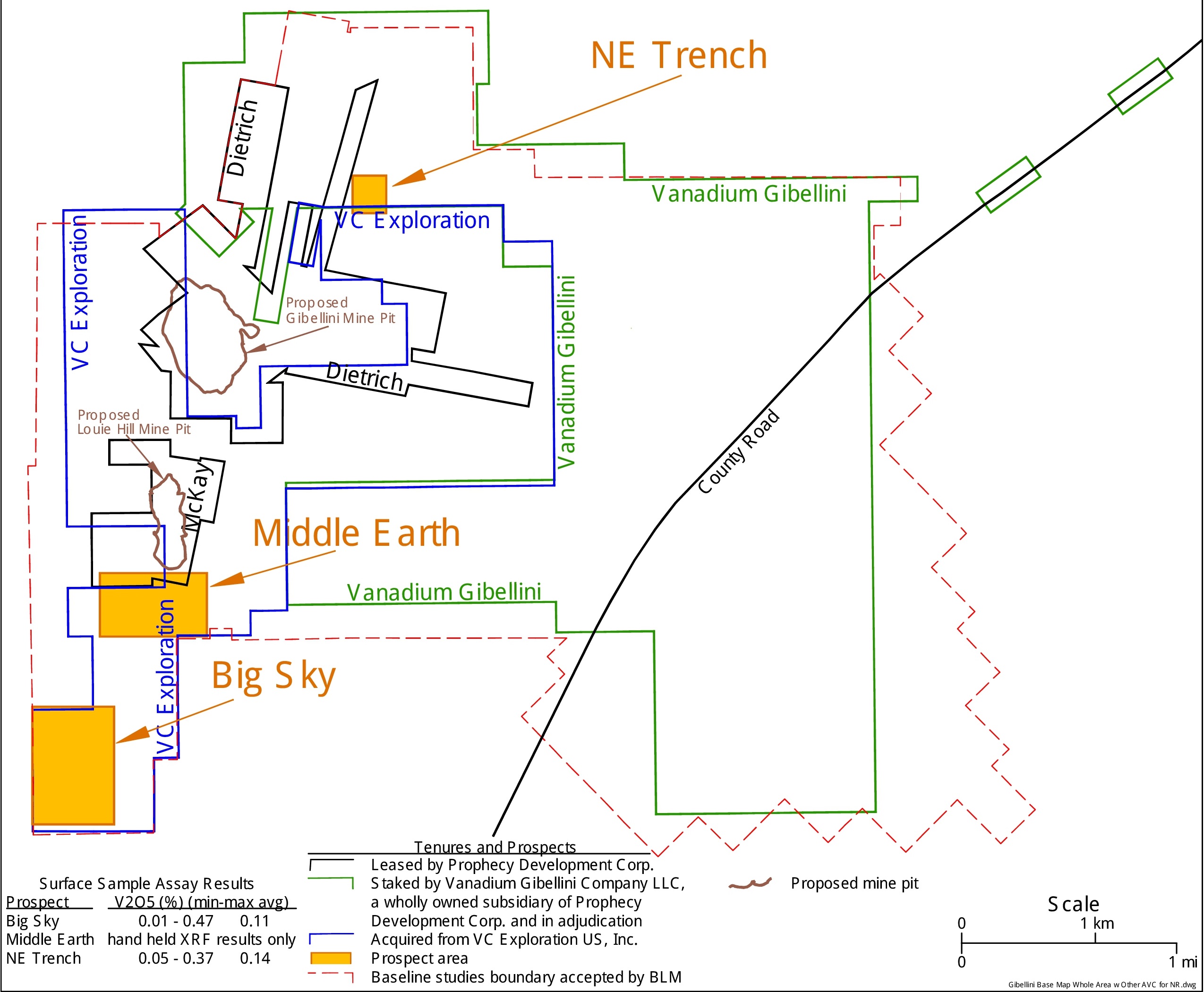 John Lee, Prophecy’s Executive Chairman states: “With the land acquisition phase now complete, Prophecy is progressing discussion with BLM on any necessary adjustment to the prior submitted baseline studies and Plan of Operations in order to start the National Environmental Policy Act process for our Gibellini vanadium project in 2018.”